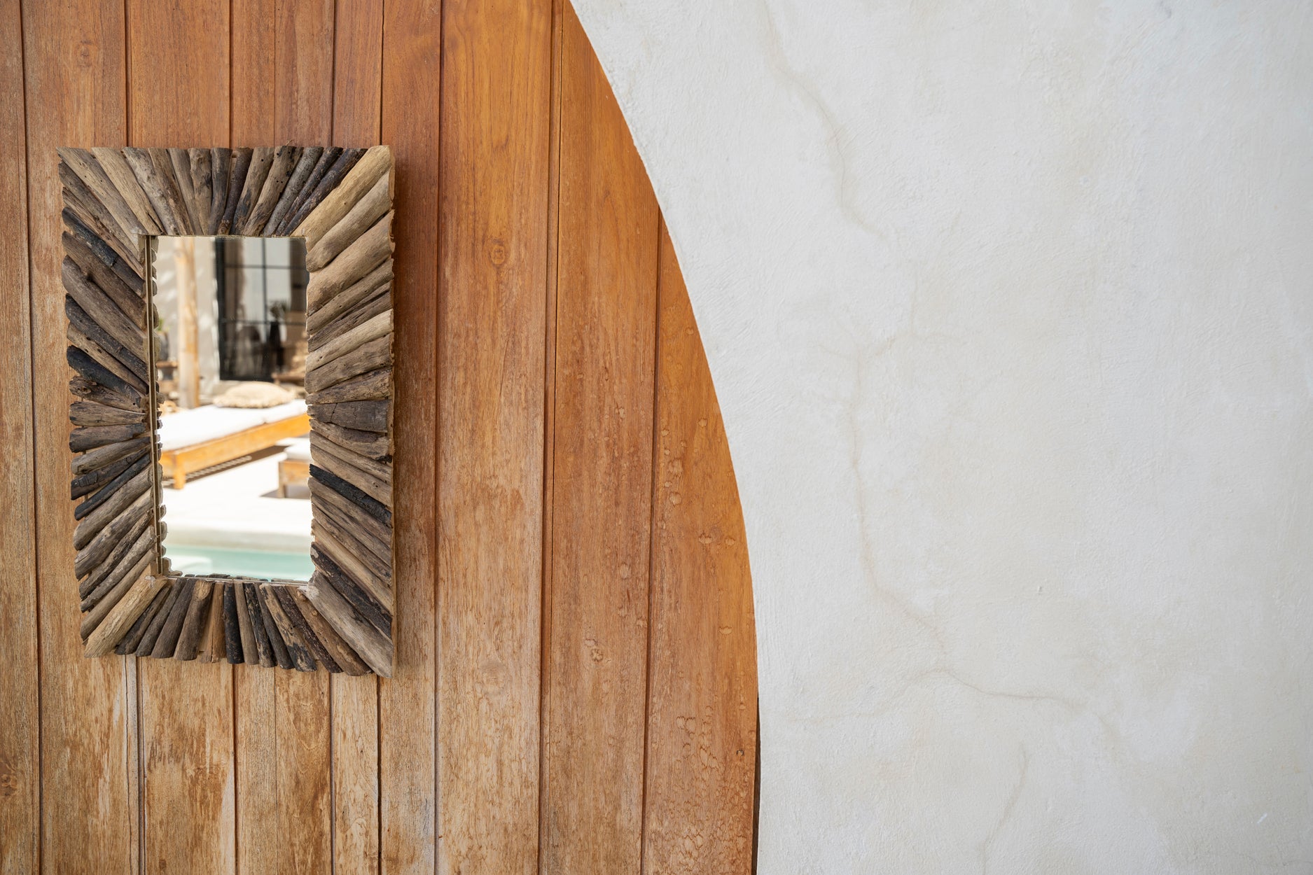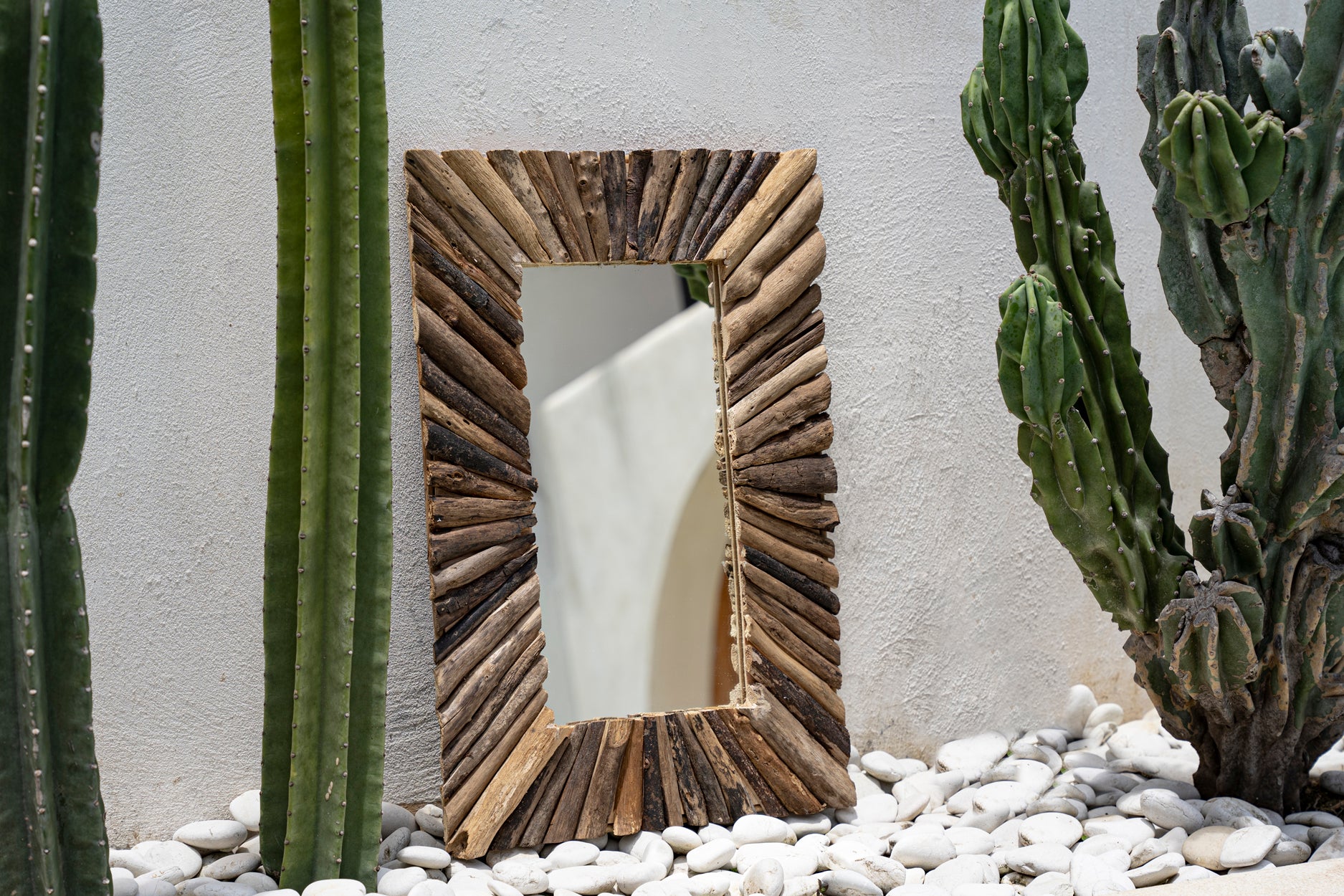 Chaque pièce est unique : ce magnifique miroir est fabriqué à partir de bois flotté soigneusement assemblé autour d’un verre rectangulaire central. Avec son charme naturel et artisanal, il apporte une touche authentique et chaleureuse à votre intérieur. Aucun miroir n’est identique, ce qui en fait une véritable pièce exclusive.