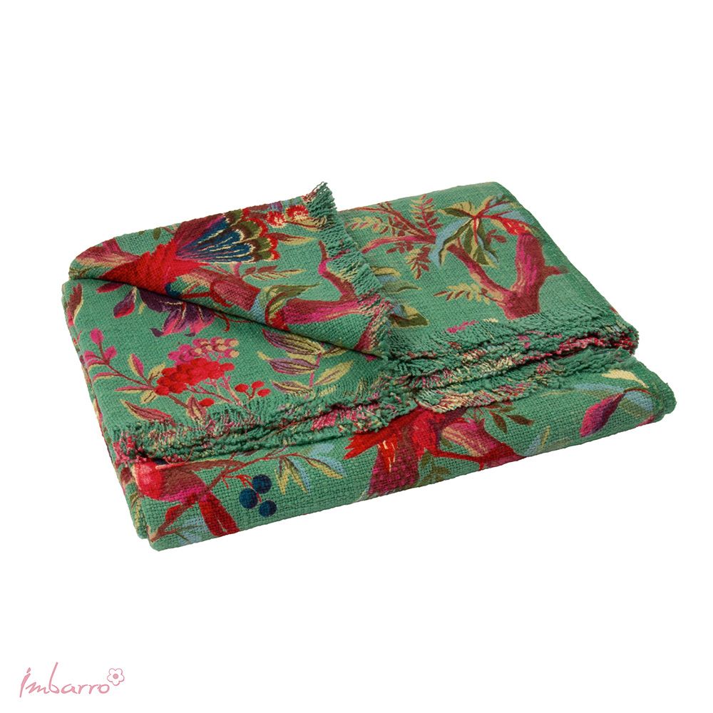 Ce joli grand plaid tissé main en coton arbore notre imprimé paradisiaque préféré. Il est orné de franges ludiques sur les quatre côtés. Coloré, tendance et romantique ! Associez-le aux autres coussins Imbarro pour un joyeux mélange de couleurs sur votre canapé, votre lit ou votre banc de jardin. Disponible en quatre coloris. Avec les grands coussins assortis !
